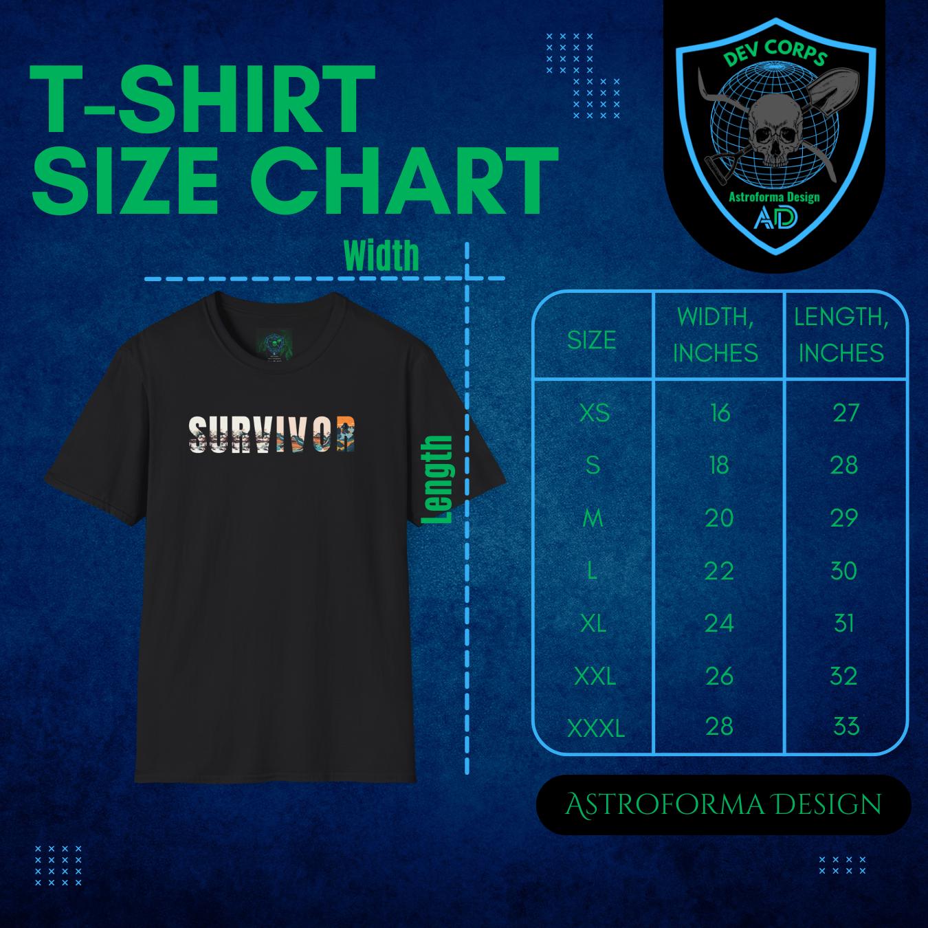 Conquer the wild with the Survivor T-Shirt! This stunning graphic tee transforms the word "SURVIVOR" into a panoramic escape—each letter a slice of rugged terrain with misty peaks, dense pines, winding rivers, and blazing sunsets that evoke the thrill of untamed frontiers. Ideal for survival game die-hards plotting their next raid or campers chasing horizon highs.