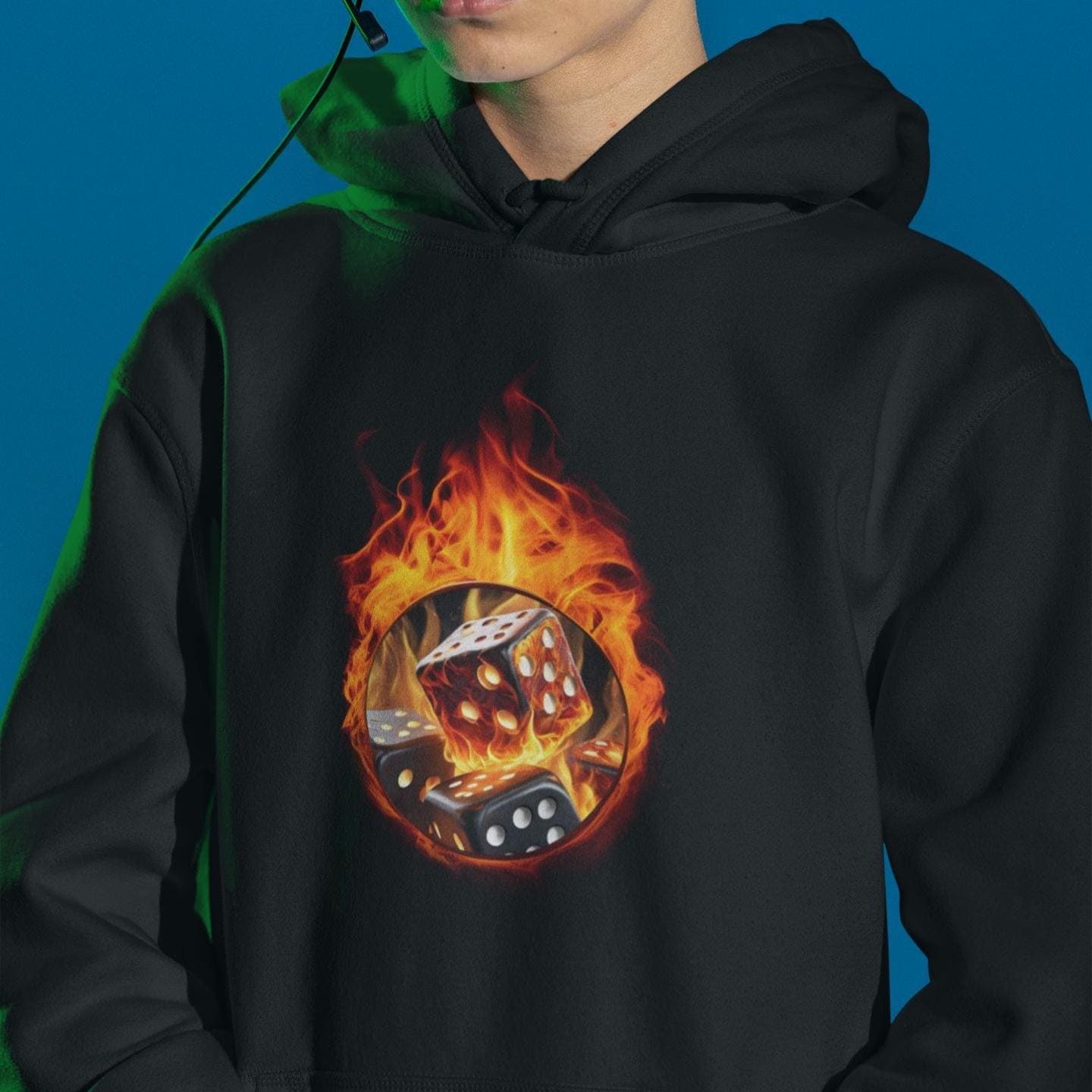 Unleash the chaos of critical hits and clutch saves with this blazing Fiery Dice Inferno Hoodie. This design captures the high-stakes thrill of tabletop RPGs, the unpredictable loot drops in survival epics, or the heart-pounding bets in battle royales.
