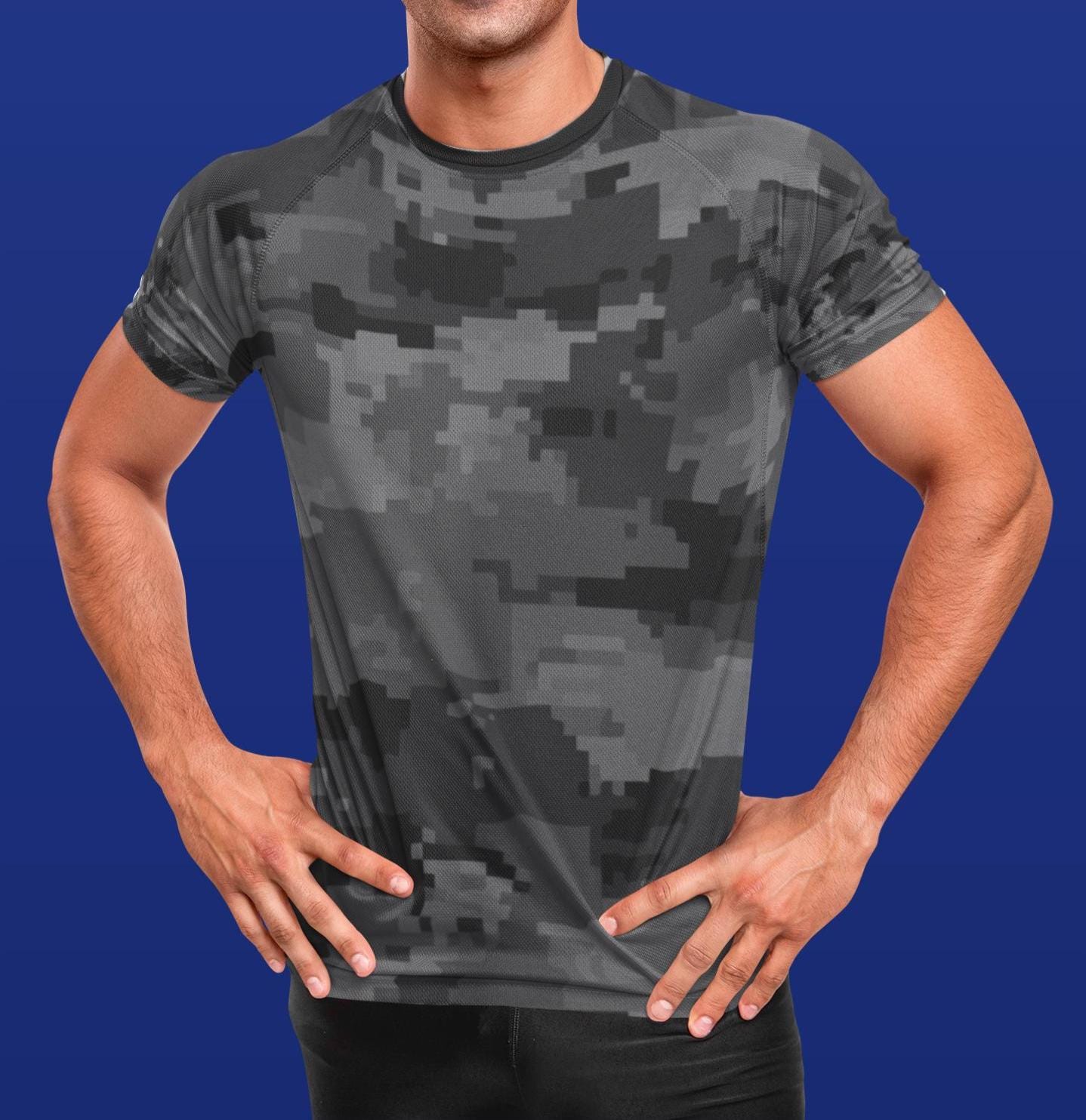 Shadow strike with the Gray Pixel Digital Camo Shirt! This short-sleeve tee codes a seamless full-wrap of pixelated grays, silver grids, and black voids. Optimized for gamers vanishing in espionage ops or urban incursions. It's the low-vis layer that hacks your horizon for infiltrations or idle scans. This tee was created to be a versatile and stylish companion for all your casual appearances. With its uniquely textured, thick, microfiber-knit fabric, this t-shirt bears a premium, soft feel that remains lightweight and highly breathable – the perfect combo for a hot day or layering.