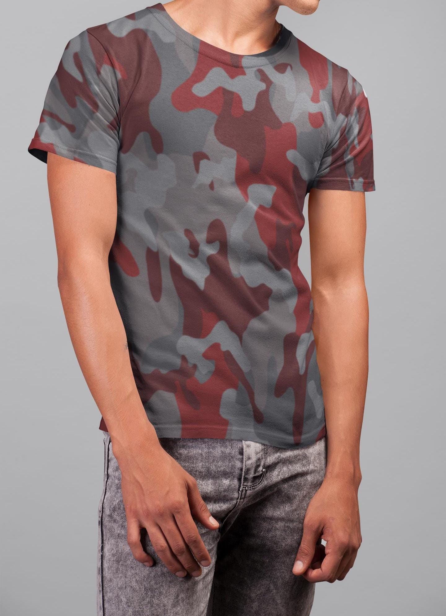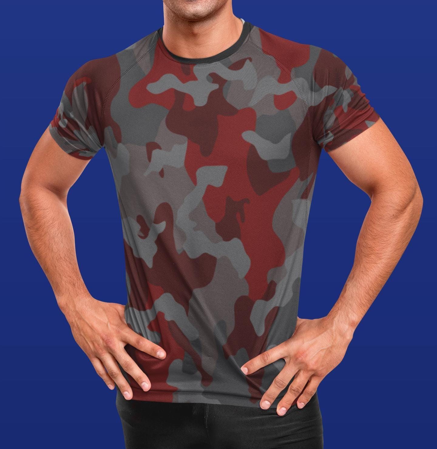 Navigate the neon with the Red Gray Urban Grit Camo Shirt! This short-sleeve tee cloaks in a seamless full-wrap of subdued reds, gray slabs, and black alleys. It's the low-key armor that echoes your edge in the grid. This tee was created to be a versatile and stylish companion for all your casual appearances. With its uniquely textured, thick, microfiber-knit fabric, this t-shirt bears a premium, soft feel that remains lightweight and highly breathable – the perfect combo for a hot day or layering.