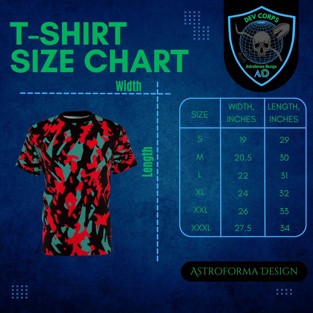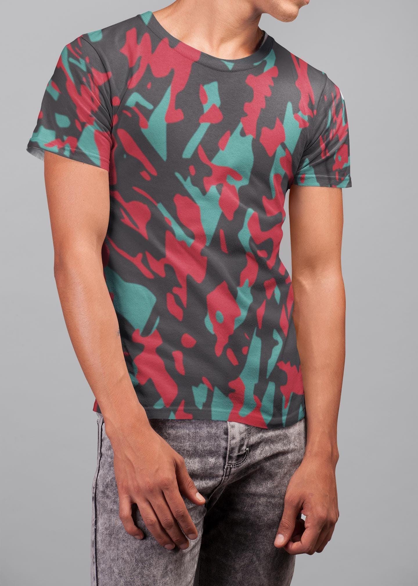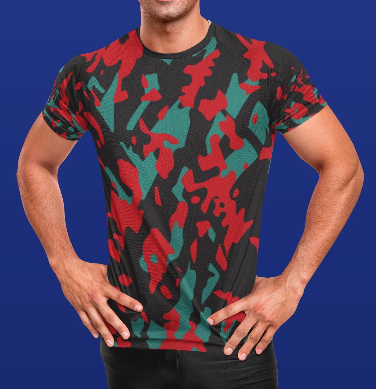 Ignite the inferno with the Red Teal and Green Fiery Camo Shirt! This short-sleeve tee erupts in a seamless full-wrap of scorching reds, teal slashes, green bursts, and black. This tee was created to be a versatile and stylish companion for all your casual appearances. With its uniquely textured, thick, microfiber-knit fabric, this t-shirt bears a premium, soft feel that remains lightweight and highly breathable – the perfect combo for a hot day or layering.
