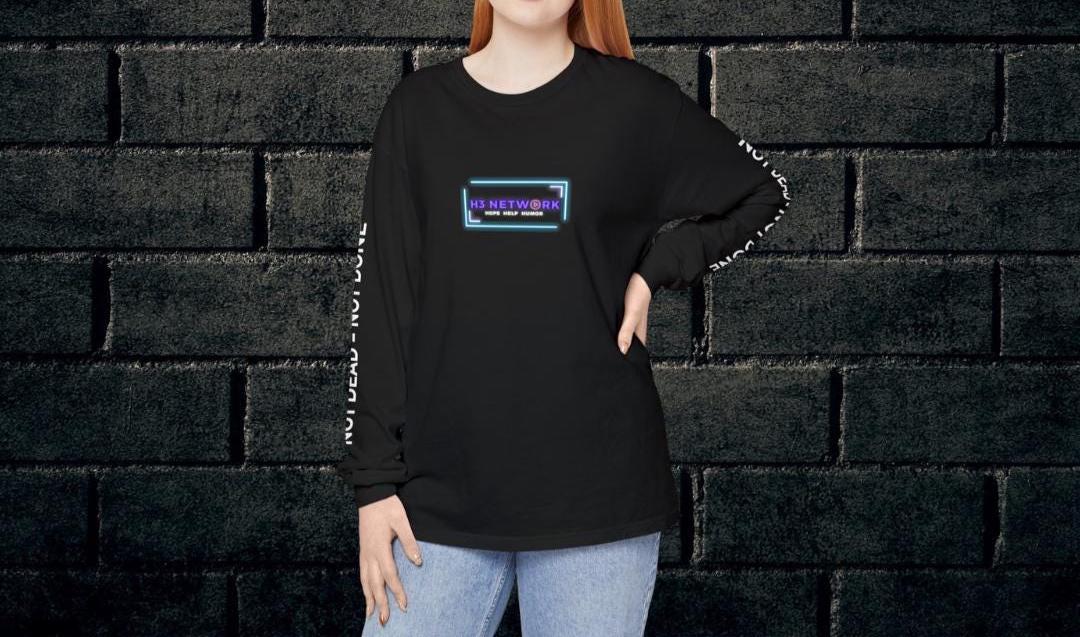 Step into the H3 revolution with the H3 "Not Dead Not Done" Long Sleeve Shirt from Astroforma Design, crafted in bold partnership with the Hope, Help, Humor Network. We're amplifying the unfiltered stories of reentry warriors, addiction survivors, and criminal justice changemakers because every voice deserves a mic drop. This isn't just a shirt; it's a badge of resilience, a daily reminder that healing hits harder with heart and hilarity.