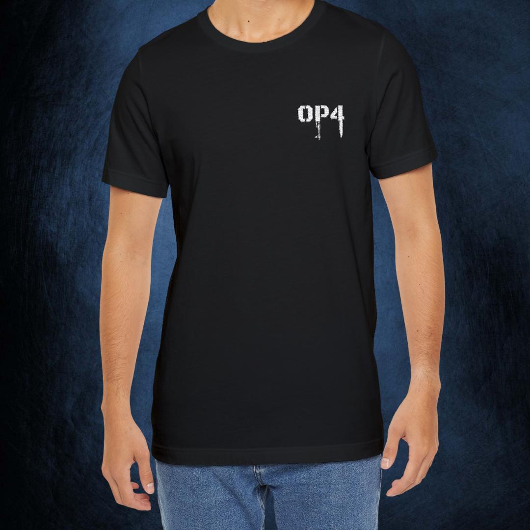 Elevate your everyday gear with this timeless black t-shirt featuring a premium embroidered white OP4 logo on the chest—crafted with raised, durable stitching for a textured, professional finish that stands the test of time. Made from soft, high-quality cotton with a relaxed fit, it's built for comfort during marathon gaming sessions or real-world adventures. The embroidered detail adds a sophisticated touch, symbolizing your commitment to the OP4 survival gaming community. Subtle yet striking, this tee is perfect for those who appreciate quality craftsmanship and strategic style.