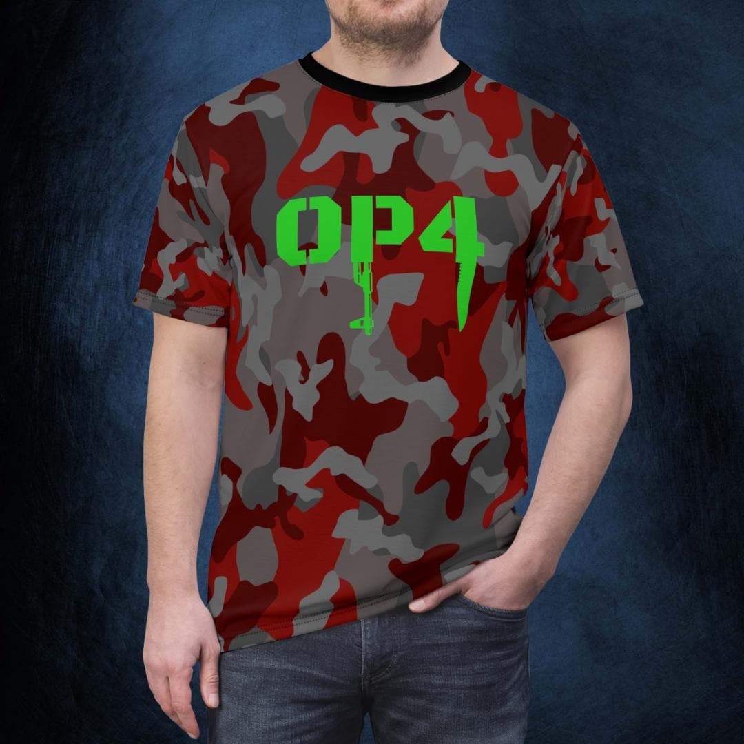 Blend into the action with this camo all-over print t-shirt, highlighted by a bold green OP4 logo that drips with intensity. Made from breathable, high-quality Polyester for all-day wear, it's ideal for gamers who thrive in high-stakes survival scenarios. Show your allegiance to the OP4 community with this unique design that captures the essence of camouflage and cunning strategy. Perfect for casual outings, LAN parties, or dominating the virtual wilderness.