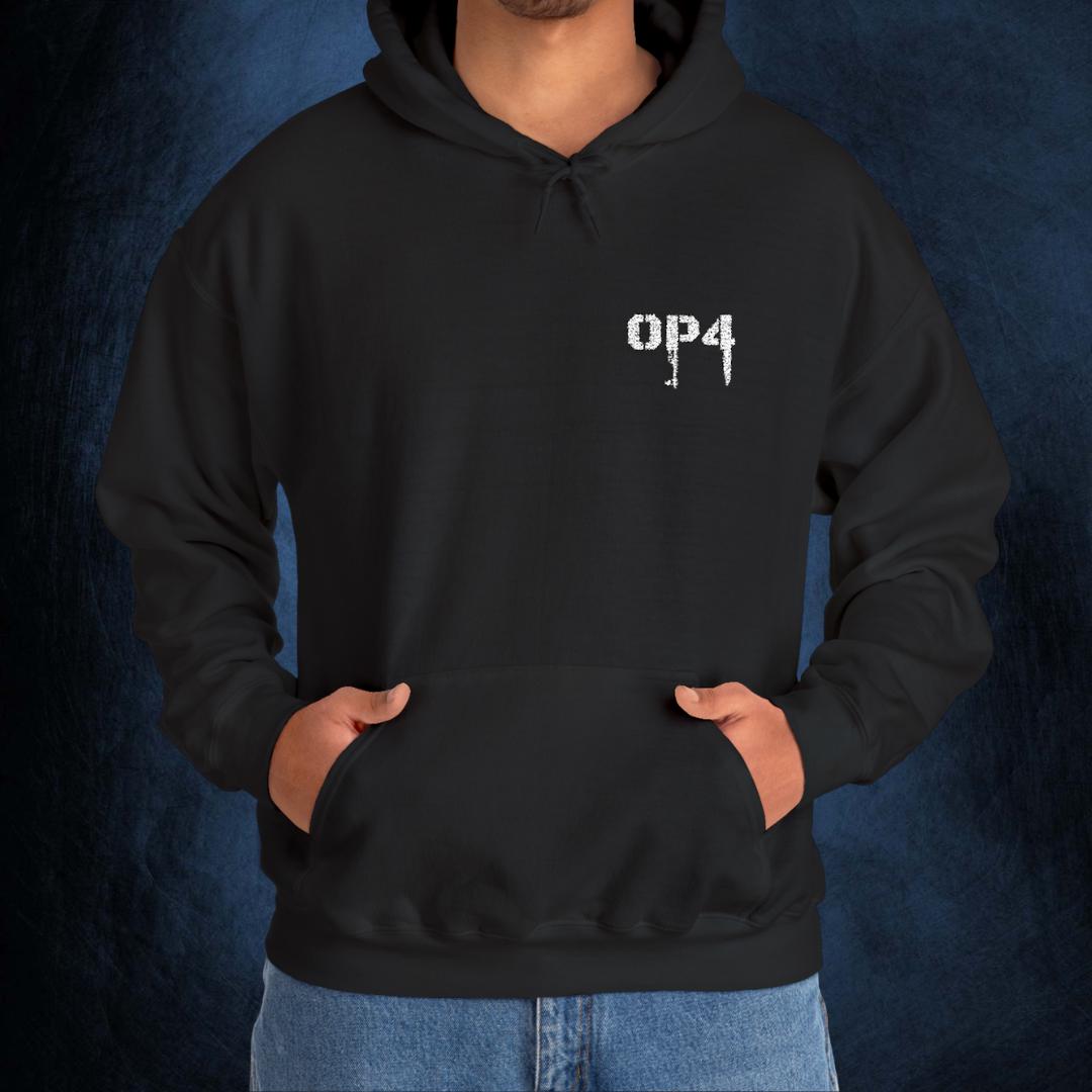 Layer up with purpose in this classic black hoodie, highlighted by a crisp embroidered white OP4 logo on the chest, delivering a raised, textured design that's built to last through countless washes and intense sessions. Soft fabric, kangaroo pocket, and adjustable drawstring hood provide all-day warmth and comfort, whether you're deep in a survival raid or out in the cold. The premium embroidery elevates this piece, giving it a polished, high-end feel that proudly reps the OP4 gaming community. Durable, stylish, and ready for any challenge.