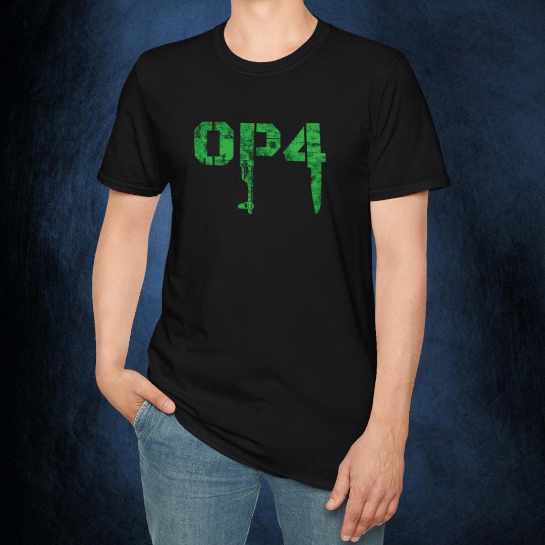 Embrace the core of survival gaming with this black t-shirt showcasing a textured green OP4 logo that's rugged and ready for action. Crafted from soft, resilient fabric with a classic fit, it's perfect for layering or standalone wear during your gaming pursuits. Rally with the OP4 community and let this shirt symbolize your strategic edge. Comfortable, bold, and built to last through countless victories.