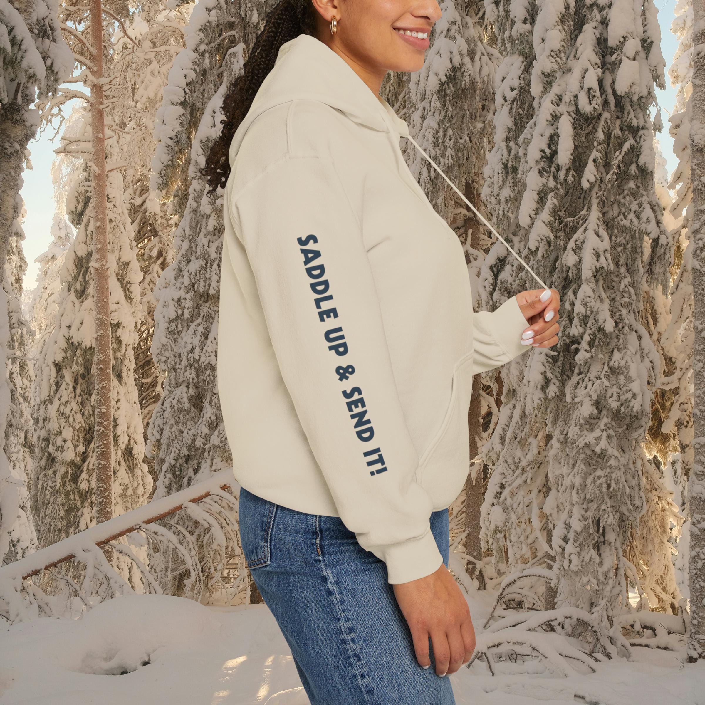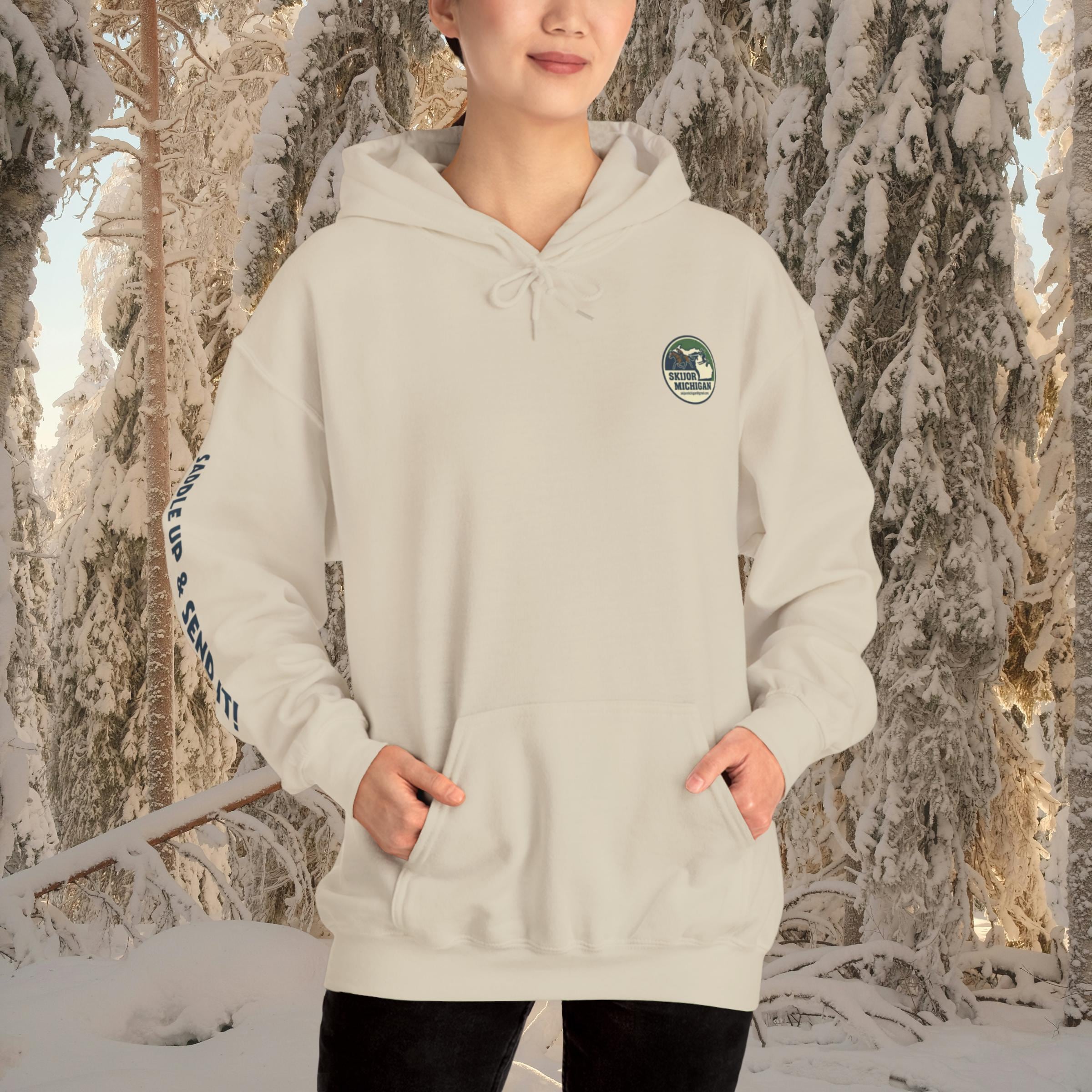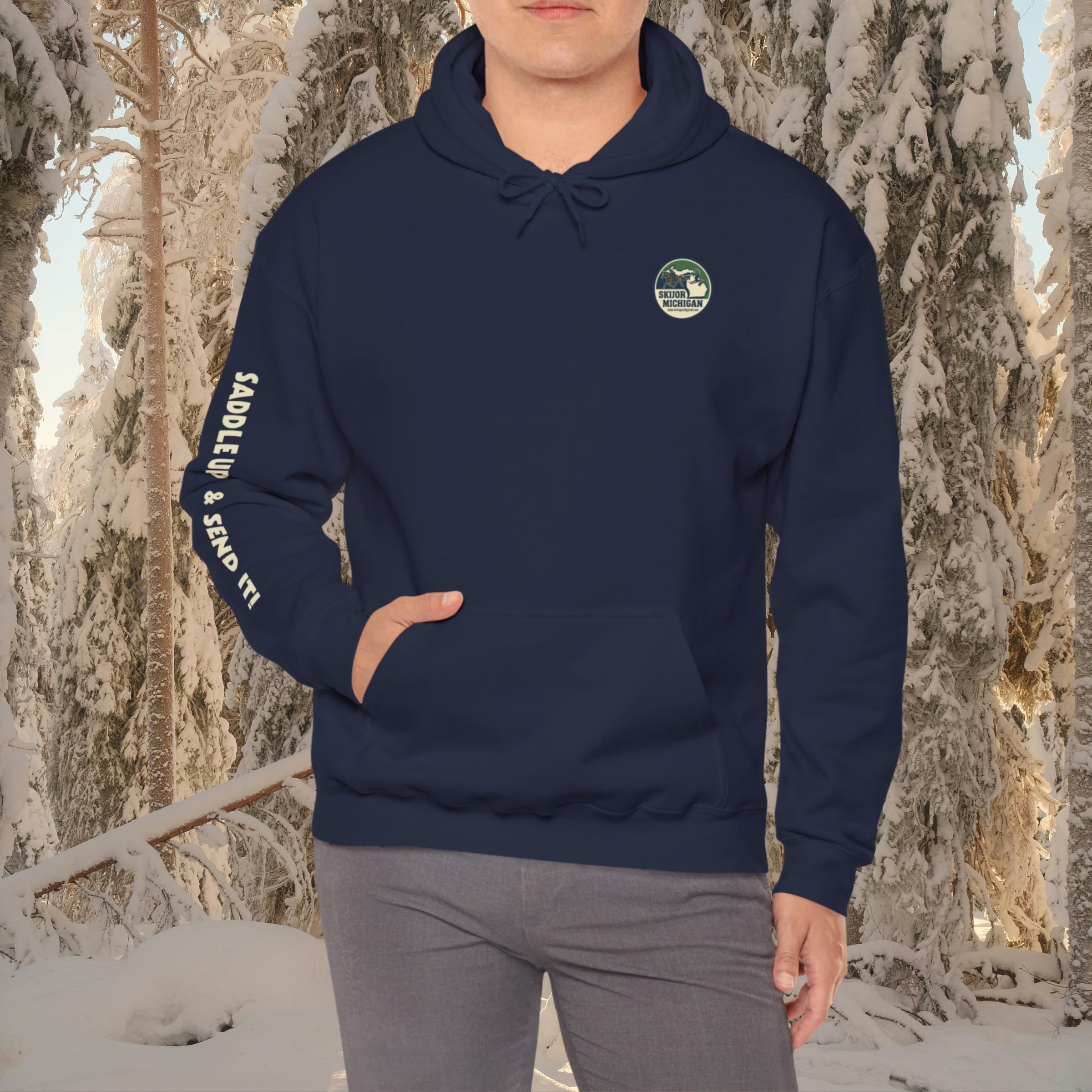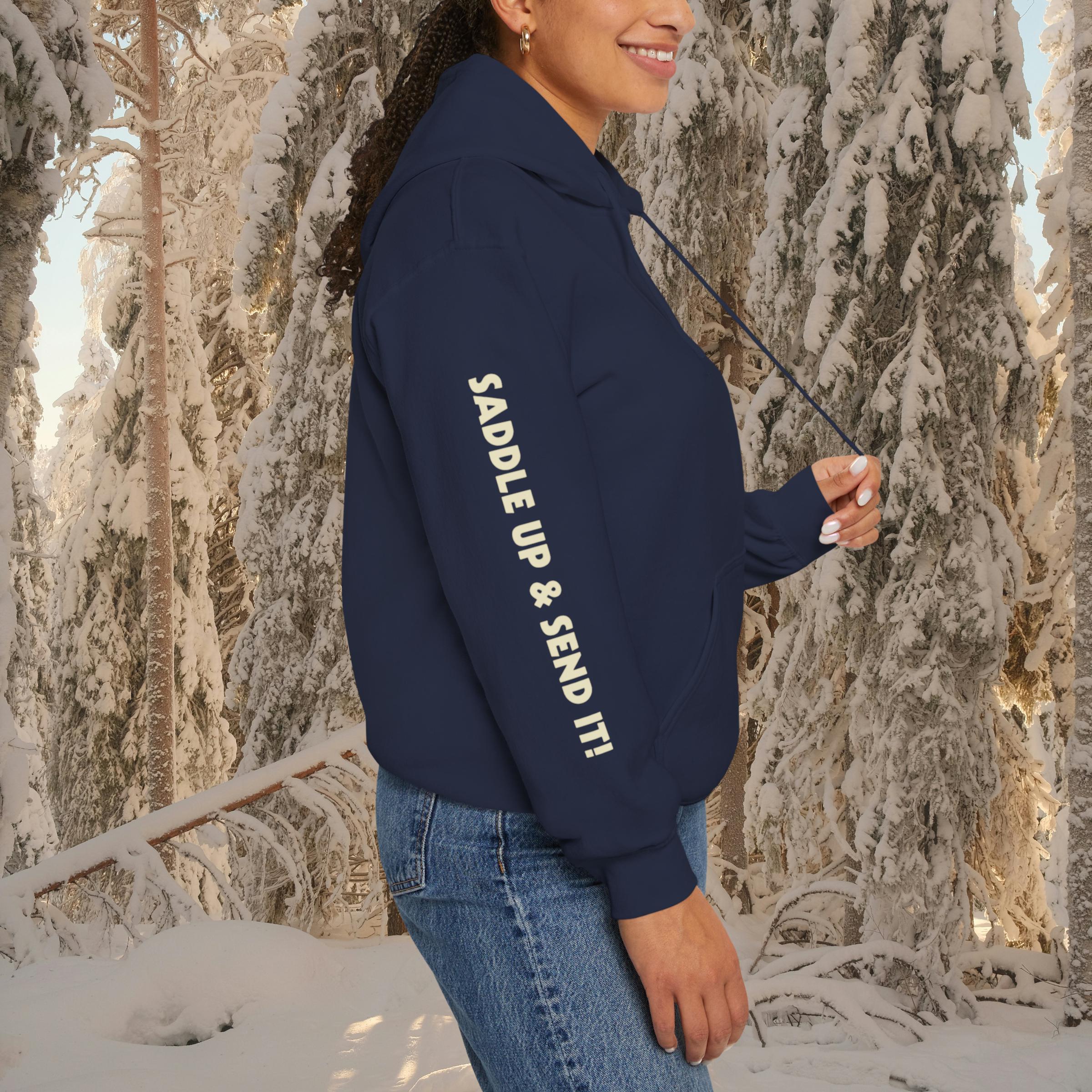 Gear up and rep Michigan's growing Skijor scene with this premium hoodie! "Saddle Up & Send It!" captures the rush, gripping the rope, horse powering through snow, blasting gates and jumps on skis. Whether you're competing, spectating, or just living for winter horsepower, this cozy pullover is made for snowy race days, bonfire hangs, and showing local pride.