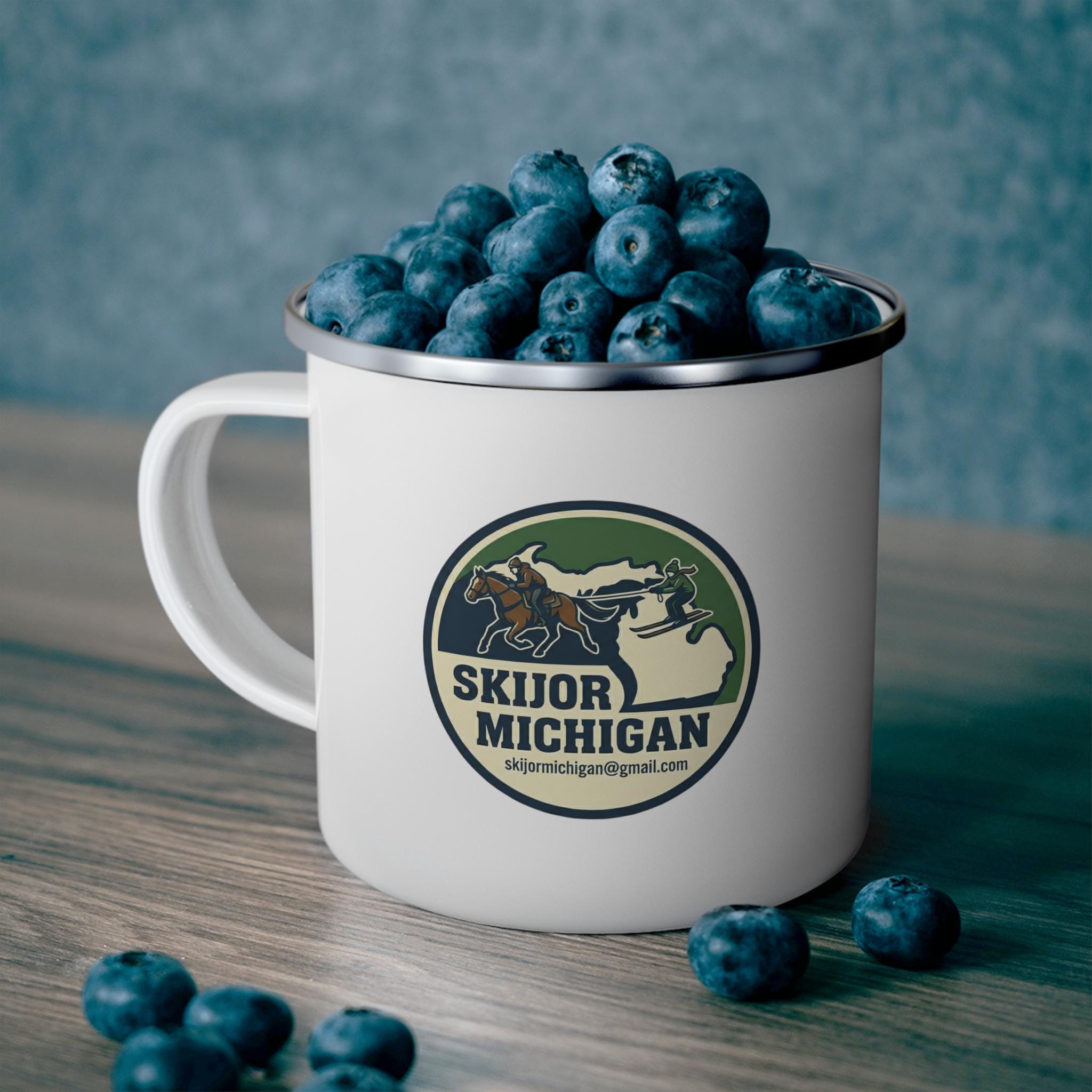 Start your morning with Michigan Skijor pride in this tough 12 oz enamel mug! Featuring our official skier logo plus the rallying cry "SADDLE UP & SEND IT!" on the reverse side. It's built for the real deal: cold mornings at Harbor Springs events, bonfires, or just fueling up before hitting the trails.