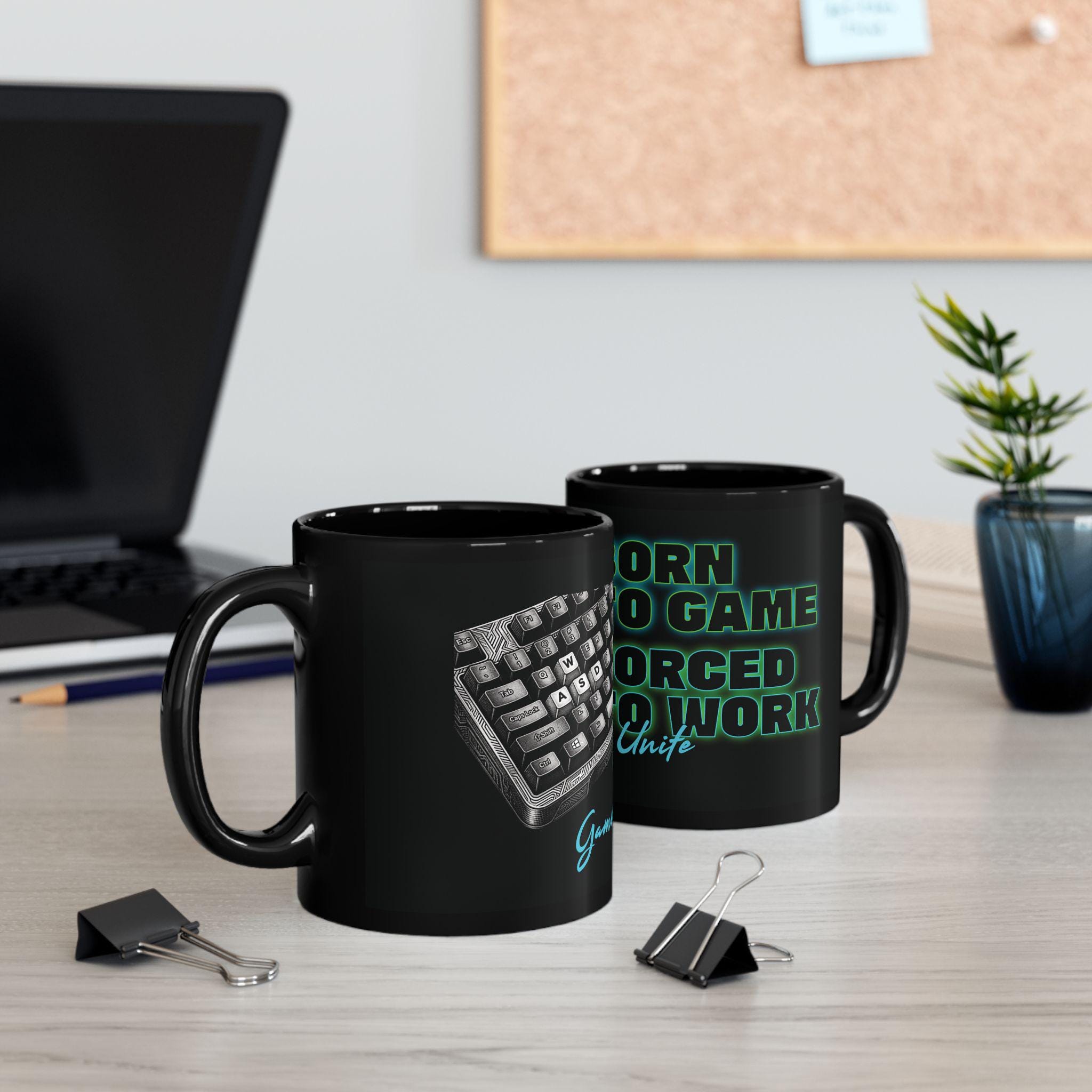 Keyboard warriors, assemble! This detailed mechanical keyboard design screams "Born to Game, Forced to Work" in glowing neon. Perfect for PC Master Race pride or as a funny office flex. Gift it to your raid team or that friend always "AFK at work." Level up your merch! 🔑