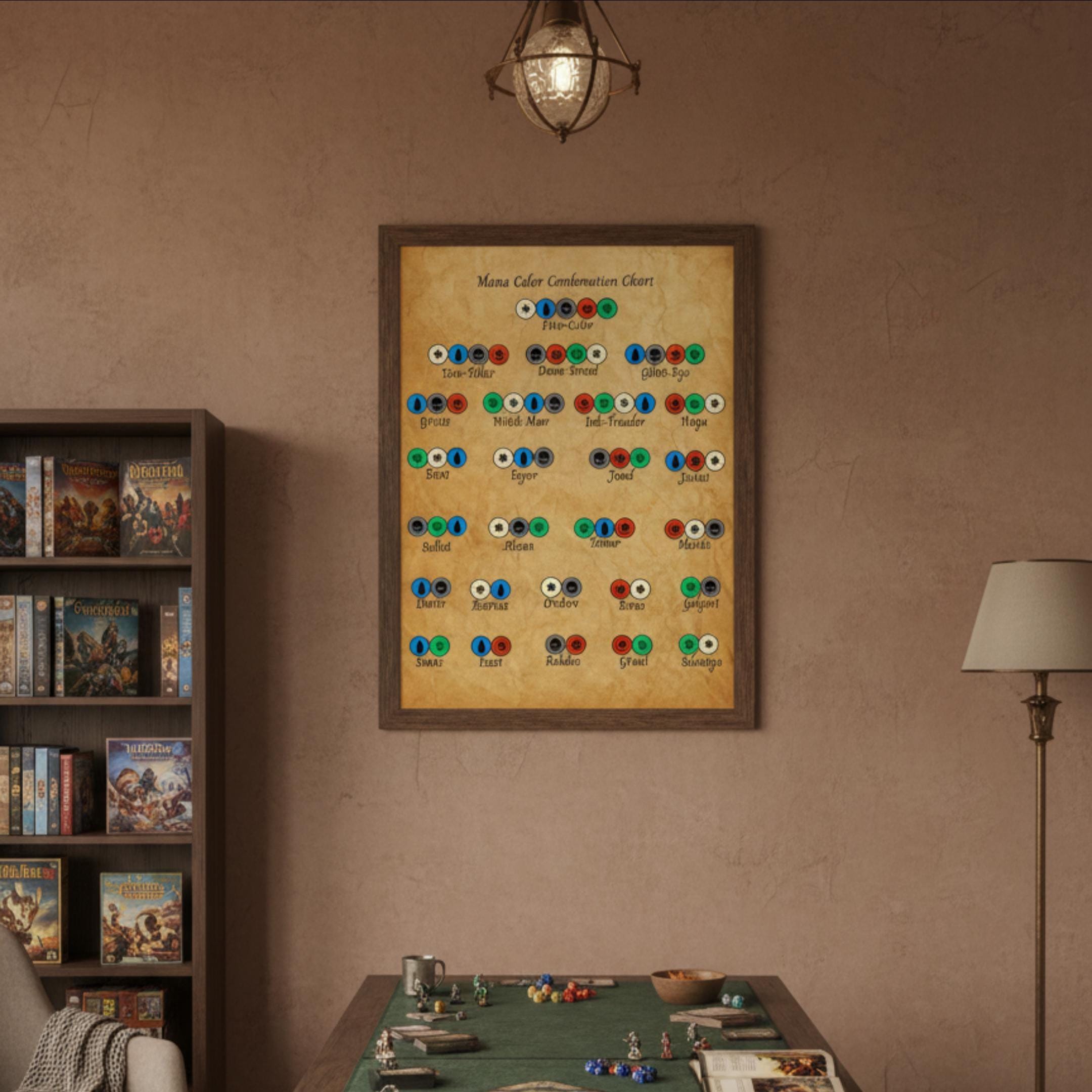 Elevate your Magic: The Gathering setup with this stunning Mana Color Combination Chart poster! Perfect for MTG enthusiasts, Commander players, and deck builders, this chart visually breaks down all the iconic color combinations.