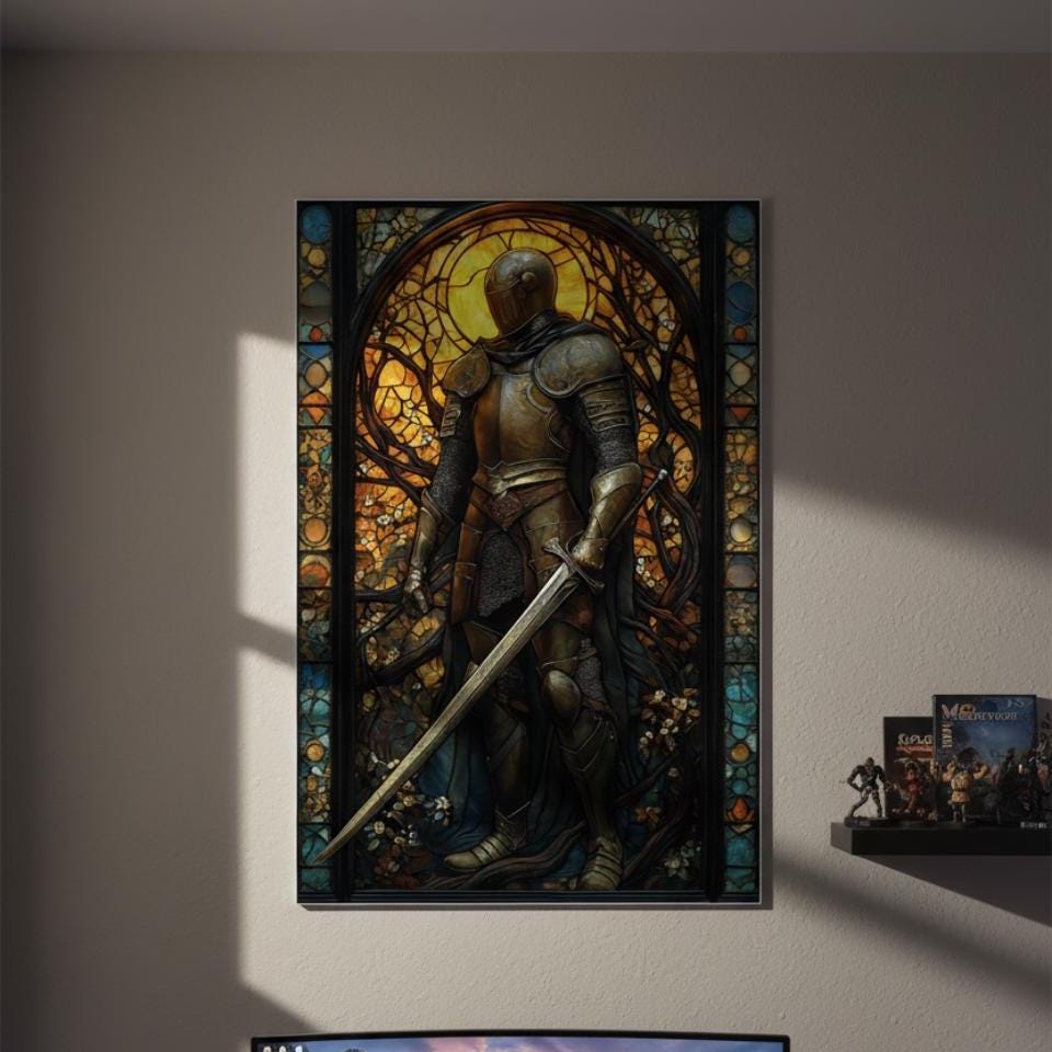 Honor the old ways with this Royal Knight Stained Glass poster! Perfect for fantasy gamers, history buffs, D&D groups, or anyone who loves classic knight aesthetics. The rich colors and intricate details make it a standout piece. Excellent gamer gift for the knight lover or collector building a medieval/fantasy wall.