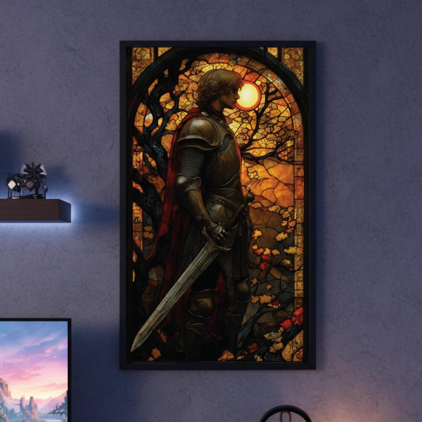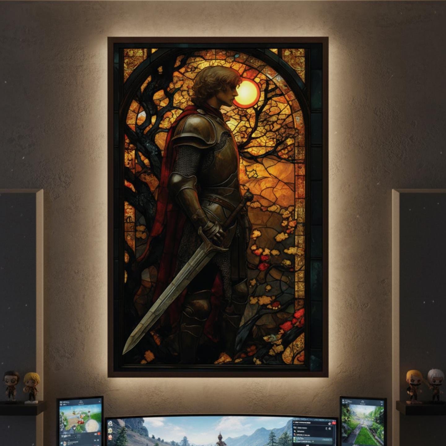 Channel legendary heroism with this Gothic Knight Stained Glass poster! Perfect for D&D players, fantasy RPG fans, or anyone who wants a heroic, high-fantasy statement piece in their gaming setup. The dramatic lighting and rich colors pop beautifully under RGB lights and instantly elevate any battle station, stream room, or man cave.