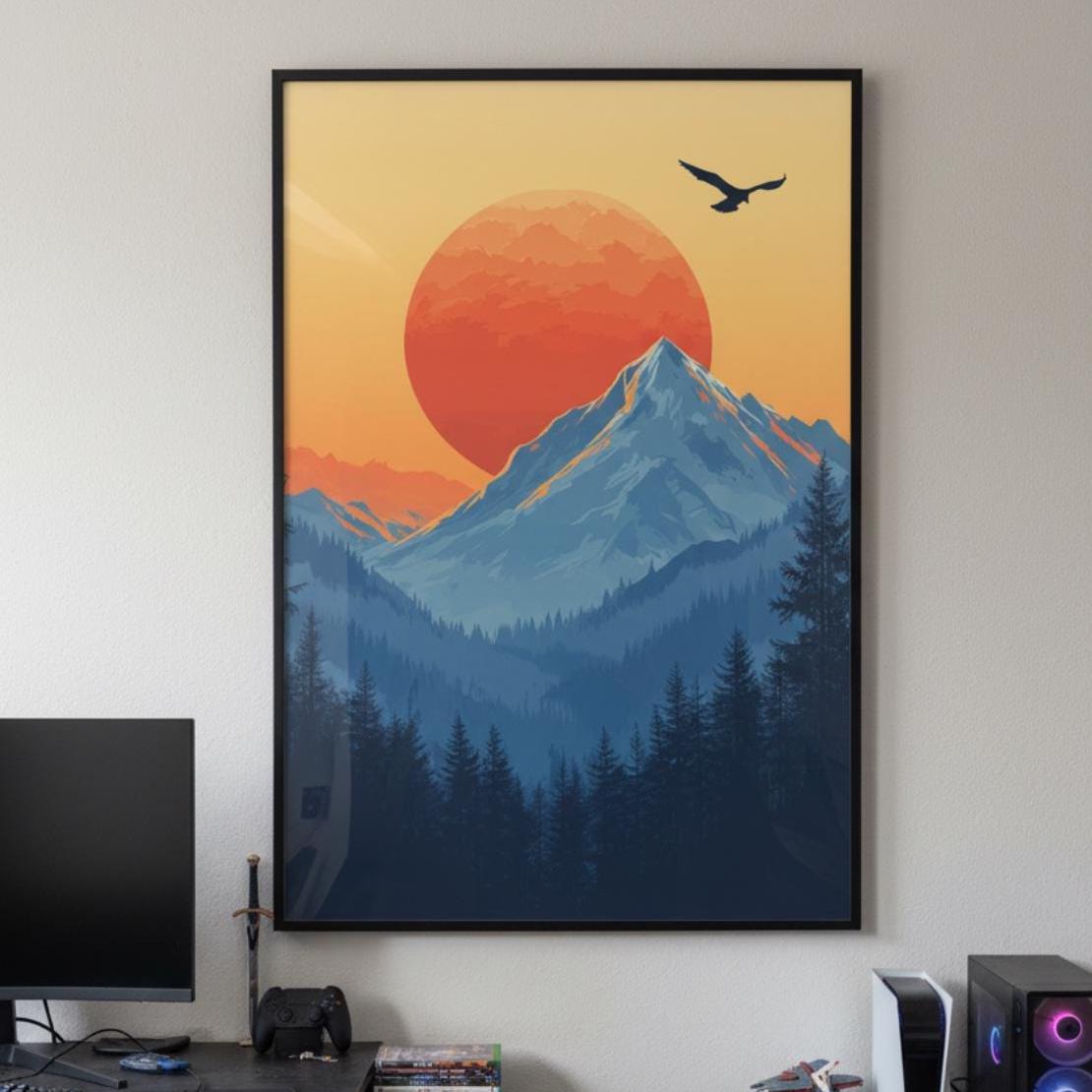 Claim your summit with this Epic Mountain Sunrise poster! Perfect for D&D wilderness campaigns, RPG inspiration, or anyone building an immersive gaming room setup. The bold colors and clean composition pop beautifully under RGB lights and instantly turn any wall into a heroic focal point that screams “the adventure awaits.”