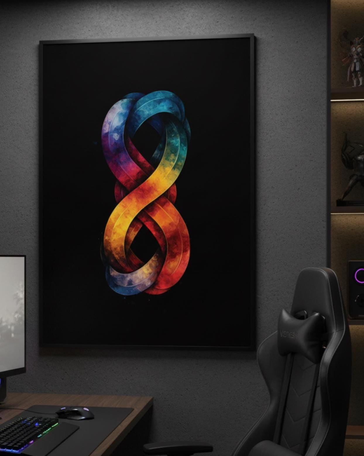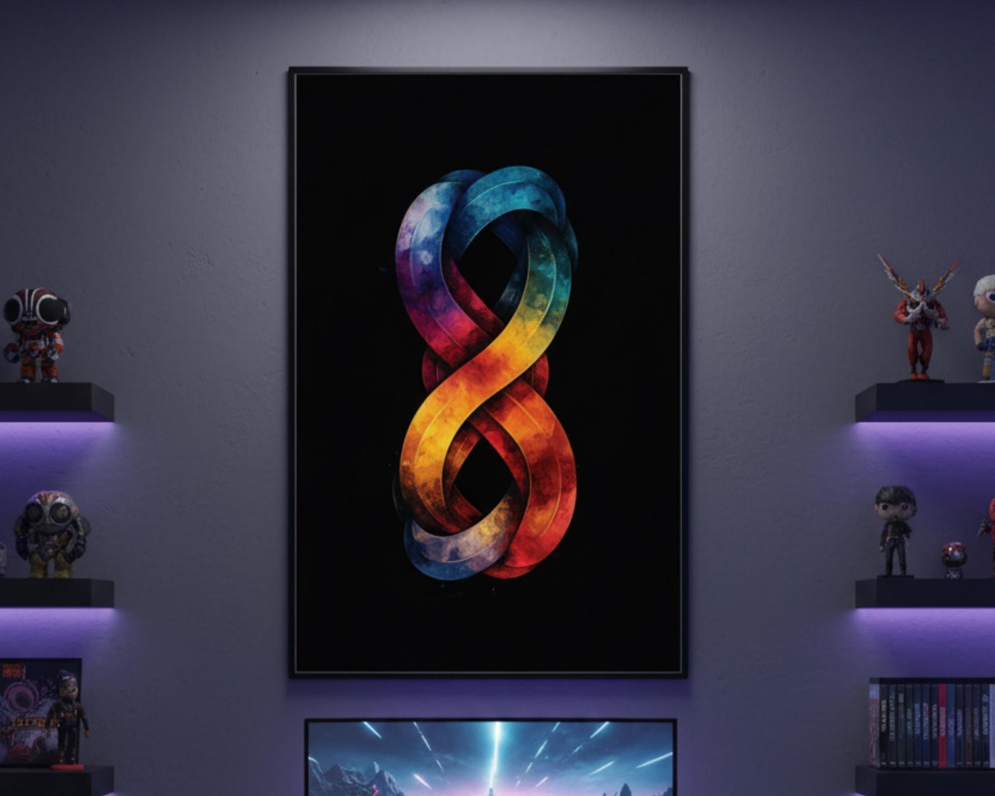 Lock in endless energy with this 3D Rainbow Infinity Symbol poster! Ideal for PC gamers, tabletop players, and anyone who lives in the infinite loop of “just one more quest.” Whether you’re into endless runs, game marathon nights, or building the ultimate battle station, this vertical piece becomes the focal point of any gaming setup.