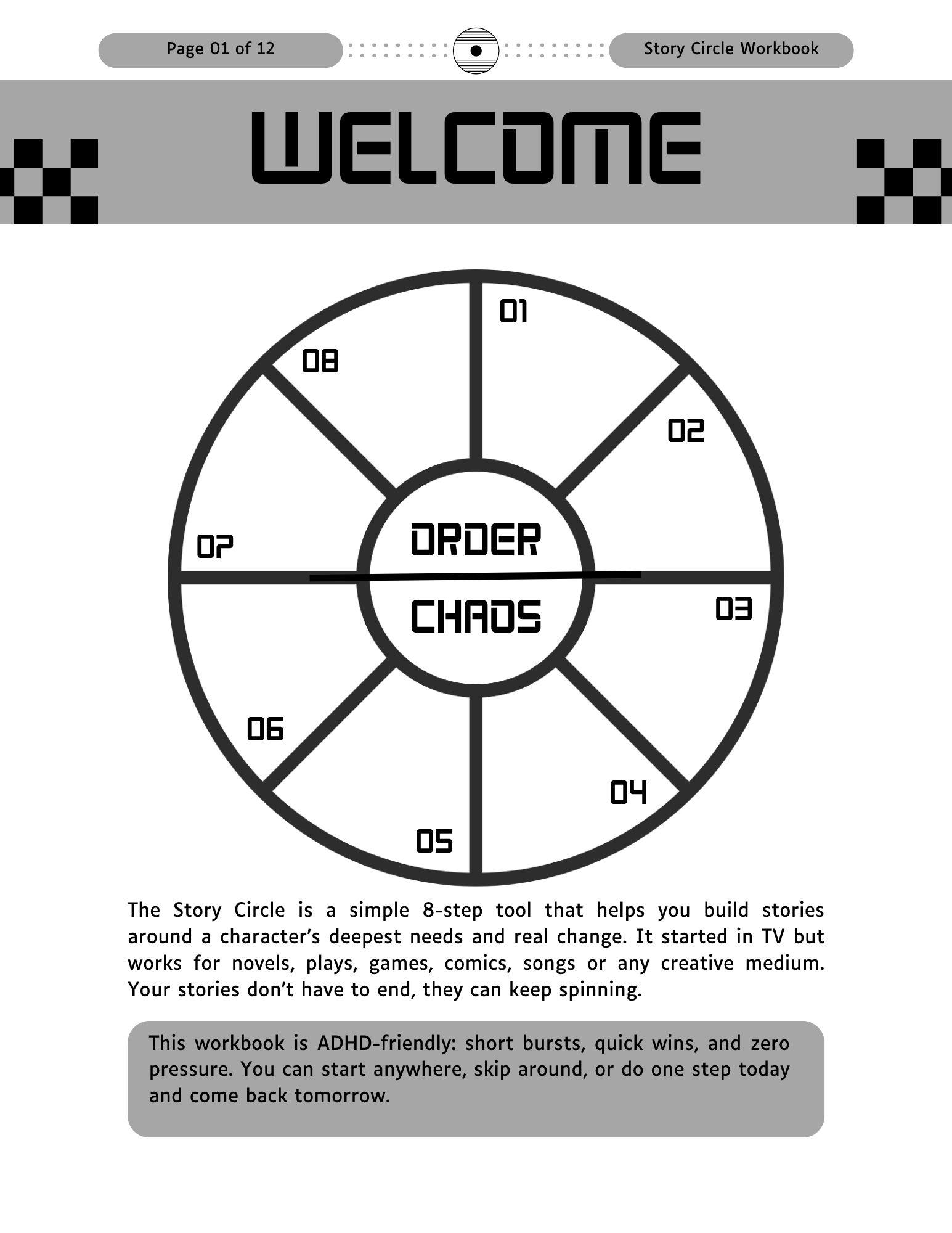 Print the whole thing or just the pages you need today. Work one step at a time, skip around, or hyperfocus on whatever feels exciting. No pressure, just endless stories.
